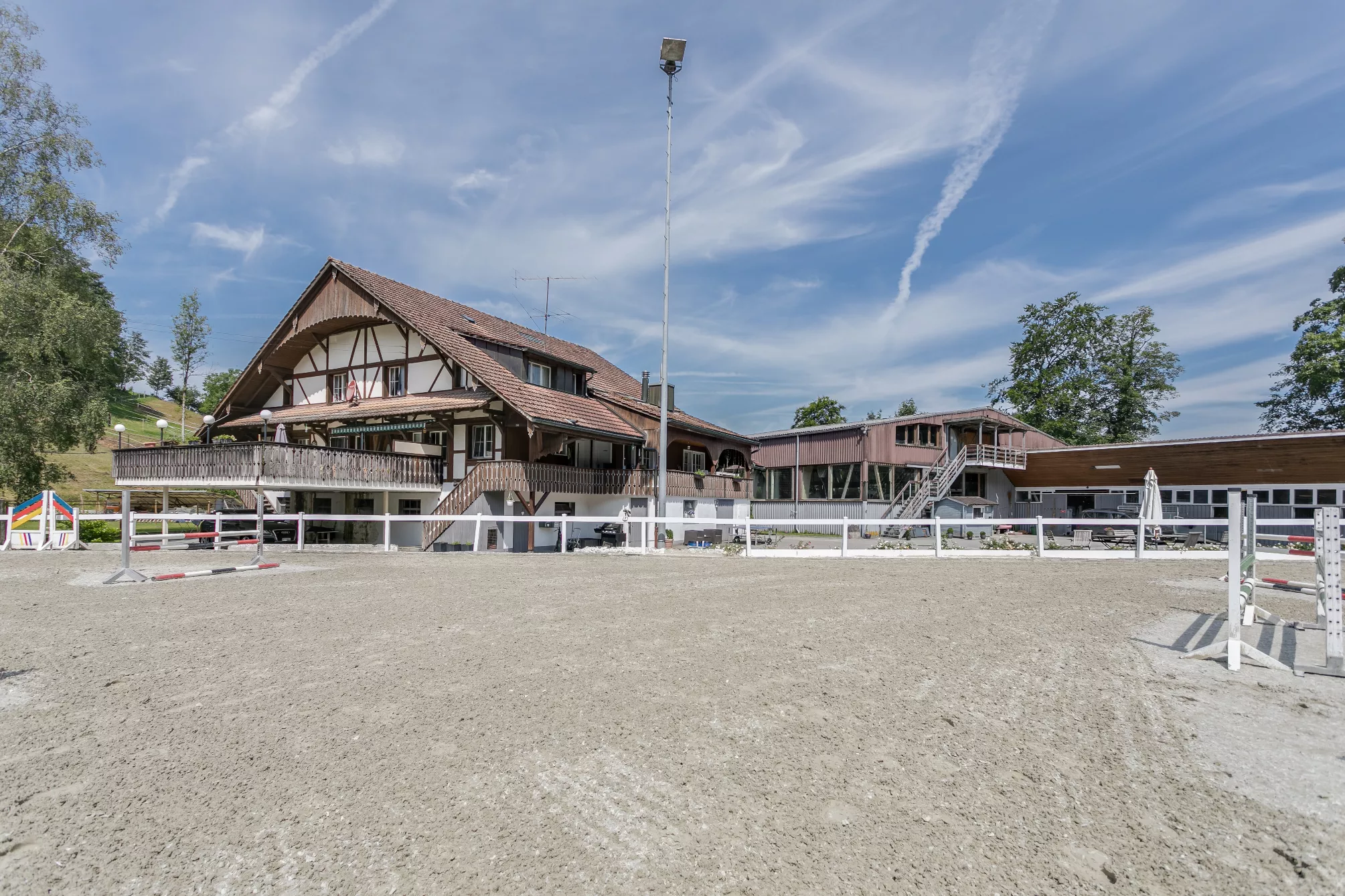 Unsere erstklassige Reitanlage bietet dir eine herausragende Infrastruktur, um deine Reiterlebnisse auf ein neues Niveau zu heben. Mit modernen Einrichtungen – darunter zwei geräumige Reithallen, ein grosser Aussenplatz, komfortable Paddocks und viele weitere Annehmlichkeiten – schaffen wir eine Umgebung, in der du und dein Pferd gleichermassen in eurer Entwicklung gefördert werdet.